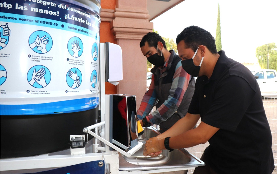 El delegado de La Pila, Pedro Pablo Cepeda Sierra, agradeció la donación del lavamanos, gestionada por el Secretario General de la demarcación, Mario Aguilar Blanco; no obstante, mencionó que varios equipos donados por ACNUR, se instalaron de manera estratégica en distintos puntos del Municipio potosino.
