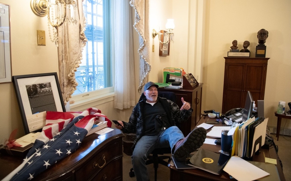 Richard “Bigo” Barnett, uno de quienes irrumpieron en el Capitolio, fue detenido este viernes, informó el Departamento de Justicia de Estados Unidos. El hombre de 60 años fue fotografiado en la oficina de Nancy Pelosi, presidenta de la Cámara de Representantes, sentado en una silla y con la pierna izquierda arriba del escritorio de la demócrata.