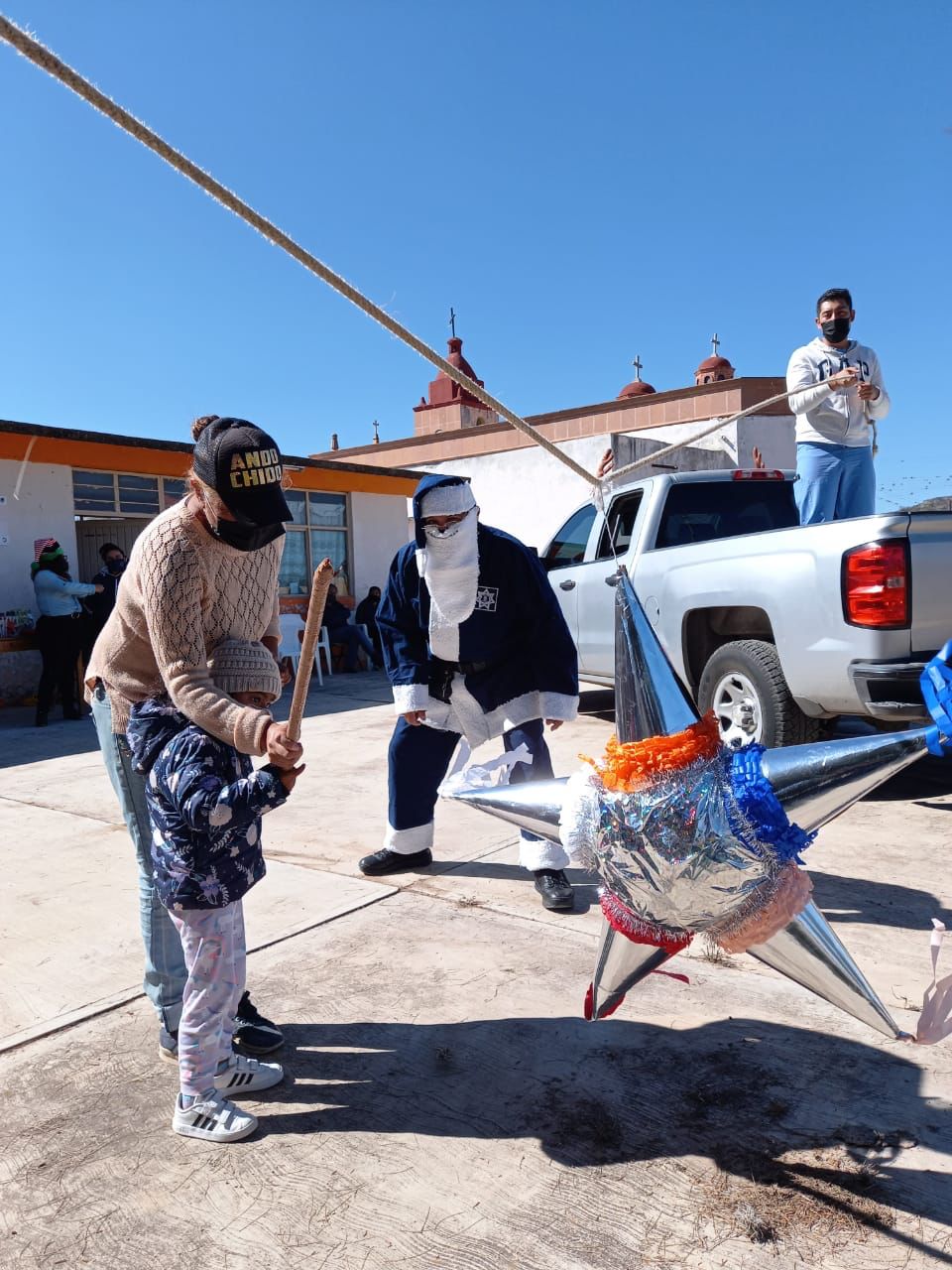 Este jueves fueron beneficiados 140 niñas y niños de las comunidades Urbanos y La Mantequilla, a quienes se les entregó un pequeño obsequio, recibieron dulces y rompieron piñatas, por parte de la Coordinación de área rural y Voluntariado. Además realizaron actividades recreativas a cargo de la Policía Vial de la Dirección General de Seguridad Pública Municipal, en compañía de botargas de diversos personajes; asimismo, se hizo entrega de una silla de ruedas a un adulto mayor.