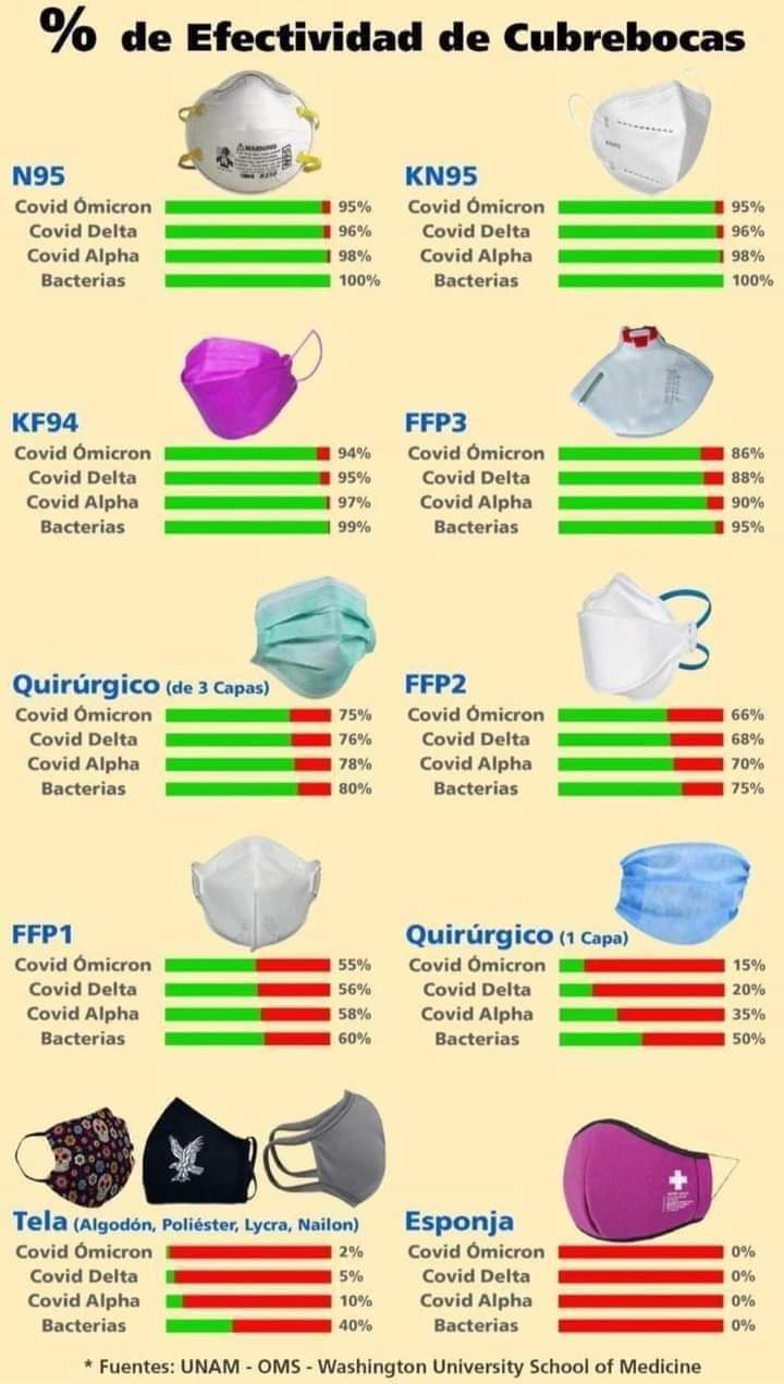 Indicó que los cubrebocas que da mayor protección son los KN95 o los quirúrgicos de triple capa que se utilizan para cirugía, ya que son los que no permiten que traspasen los virus, sobre todo la nueva cepa ómicron que es de más fácil de trasmisión.