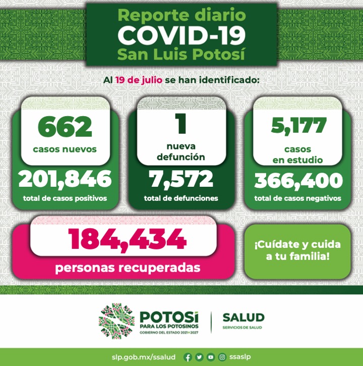 Una disminución de contagios de Covid-19 se registró en el último día al presentarse 662 nuevos casos confirmados por laboratorio y una defunción en el estado, para un acumulado de 201 mil 846 casos y 7 mil 572 muertes, de acuerdo al reporte técnico del Comité Estatal para la Seguridad en Salud.