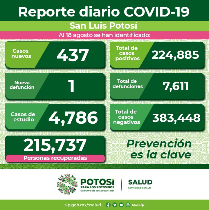 La defunción fue de una mujer de 94 años de edad, residente del municipio de Axtla; sus factores de riesgo fueron el edad mayor de 60 años e hipertensión arterial. Además, no tenía su esquema de vacunación contra el Covid-19.