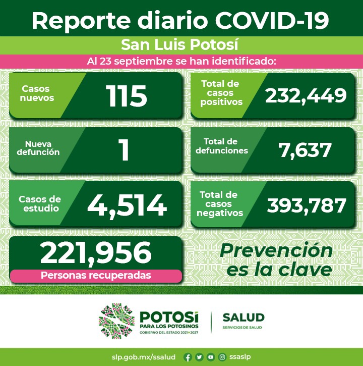 La defunción fue de un hombre de 85 años, residente del municipio de San Luis Potosí; sus factores de riesgo fueron diabetes mellitus y edad mayor de 60 años. Además, tenía su esquema de vacunación completo contra el Coronavirus.