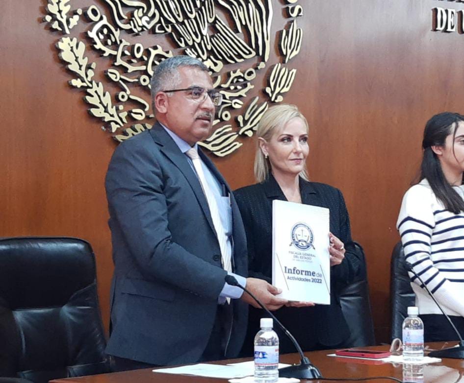 El fiscal José Luis Ruíz Contreras entregó esté jueves al Congreso del Estado su Primer Informe anual de resultados, en cumplimiento al Artículo 22 Ter de la Constitución Política de San Luis Potosí y la Fracción 10 del Artículo 22 de la Ley Orgánica de la Fiscalía General del Estado.