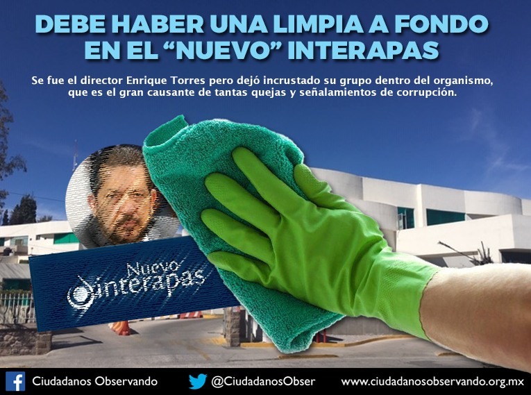 La organización Ciudadanos Observando señaló que se requiere una limpieza a fondo al interior del Interapas, si se busca que cambie para bien, pues esta carcomido por los viejos vicios que se han tenido durante administraciones.