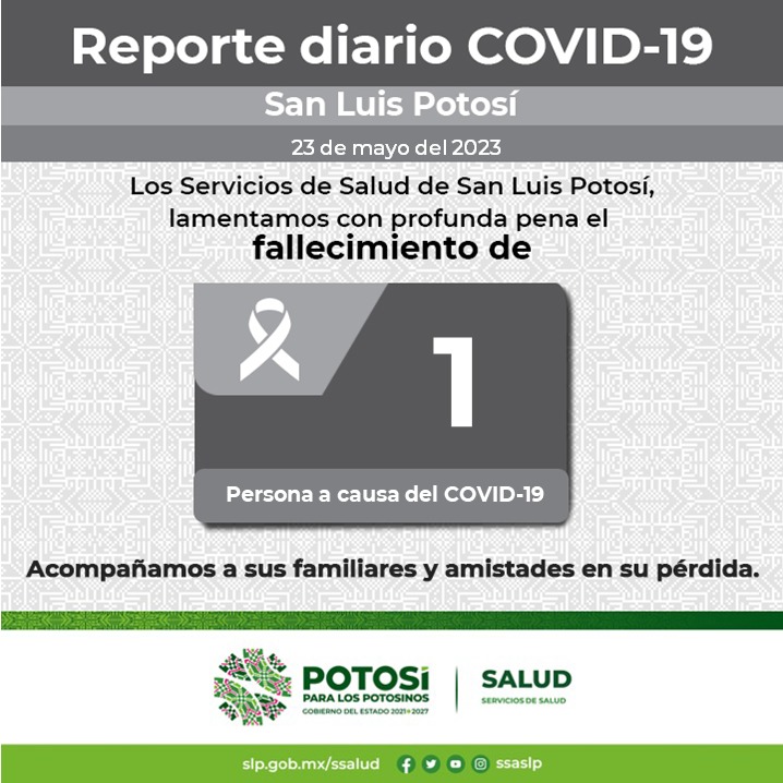La defunción fue de una mujer de 61 años de edad, residente del municipio de Tamuín; sus factores de riesgo fueron diabetes mellitos, hipertensión arterial y enfermedad del corazón. Además, no tenía su esquema de vacunación contra el coronavirus.