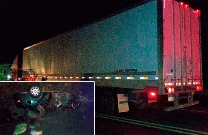 Fue poco antes de la medianoche del sábado, cuando en el kilómetro 67, tramo La Pitahaya – Tamasopo, un vehículo Nissan Sentra verde, chocó contra el remolque de un tráiler que estaba parado a la orilla de la vía de circulación, y posteriormente volcó.