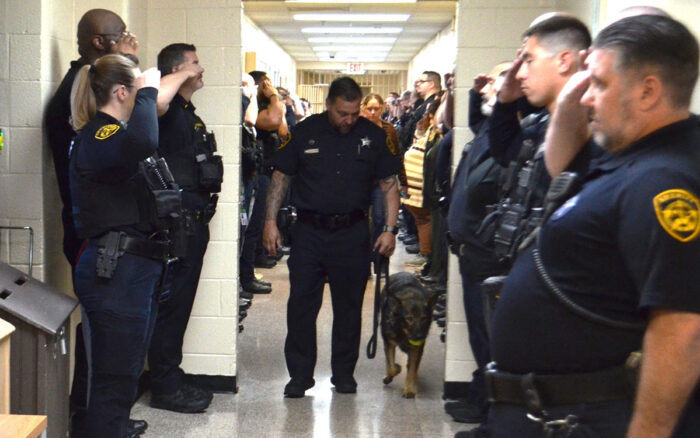 La Oficina del Sheriff de Virginia Beach celebró una ceremonia especial en honor a su servicio. Los agentes se alinearon en el pasillo y saludaron mientras Candy pasaba por última vez.