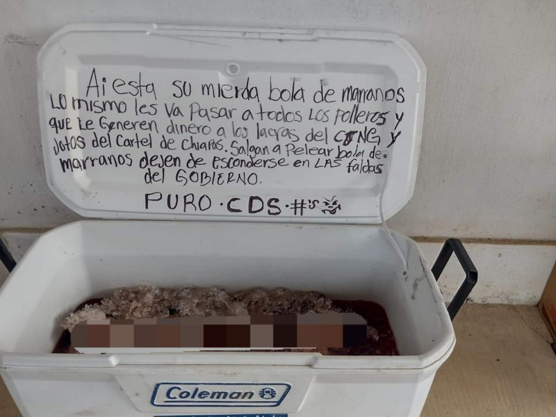 Las cabezas de cuatro personas en el interior de una hielera fueron enviadas a la dirección de una gasolinería del municipio La Concordia, con un mensaje de uno de los carteles de la droga a sus adversarios.