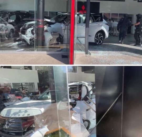 Una mujer acudió para conocer y cotizar una camioneta Outlander de último modelo, en la agencia Mitsubishi Motors de Tepic, pero su prueba de manejo no resultó lo que pensaba. Alrededor del mediodía del lunes, la mujer de aproximadamente 40 años encendió la camioneta y, accidentalmente, quitó el freno de estacionamiento y aceleró, lo que provocó que avanzara bruscamente dentro del área de exhibición. El vehículo se impactó contra otras dos camionetas nuevas y un pilar de la estructura del edificio.