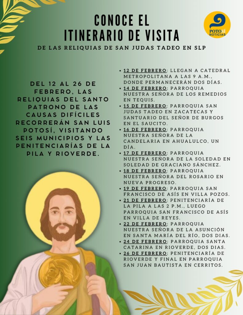 La Arquidiócesis de San Luis Potosí afina detalles para recibir las reliquias de San Judas Tadeo, el próximo miércoles en la Catedral Metropolitana y posteriormente en diversas parroquias y municipios.