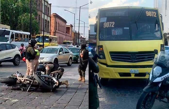 Un elemento de la Guardia Civil Estatal que hacía recorridos de seguridad en motocicleta, resultó lesionado tras ser atropellado por un camión urbano en la avenida Constitución próximo a la avenida Universidad frente a la Alameda.