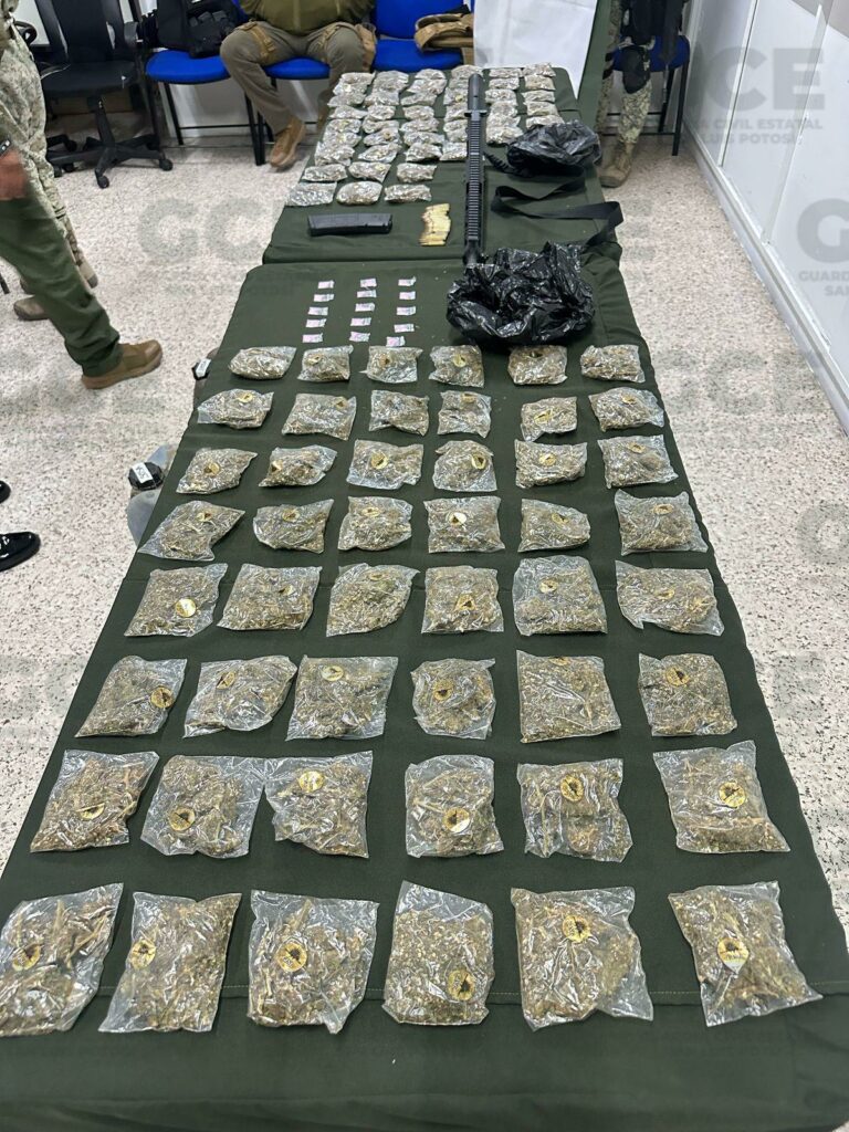 Como parte de los resultados contundentes en el combate a la delincuencia, agentes de la Guardia Civil Estatal (GCE), en coordinación con efectivos de la Secretaría de la Defensa Nacional (Sedena) y Guardia Nacional, asestaron un fuerte golpe a célula criminal, tras la detención de su presunto líder, quien fue capturado con más de un kilo de marihuana, dosis de metanfetaminas, armamento, entre otros objetos constitutivos de delito.