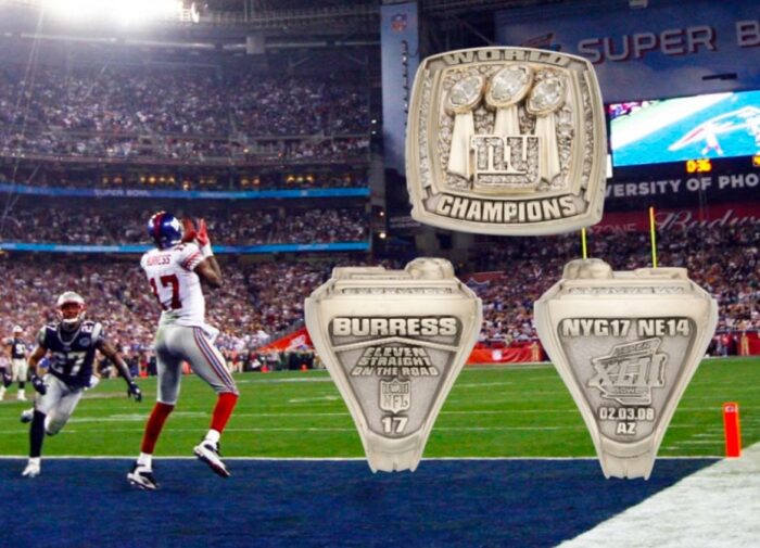 El anillo tiene un alto valor para la historia de la NFL ya que Burress atrapó el pase con el que los Giants derrotaron a los Patriots de Tom Brady que buscaban cerrar una temporada perfecta, primera de 19-0 en la liga y segunda invicta desde la conseguida en 1972 por Miami Dolphins, que conservaron la primicia de la hazaña.