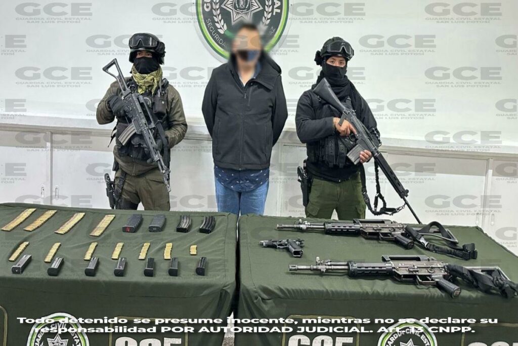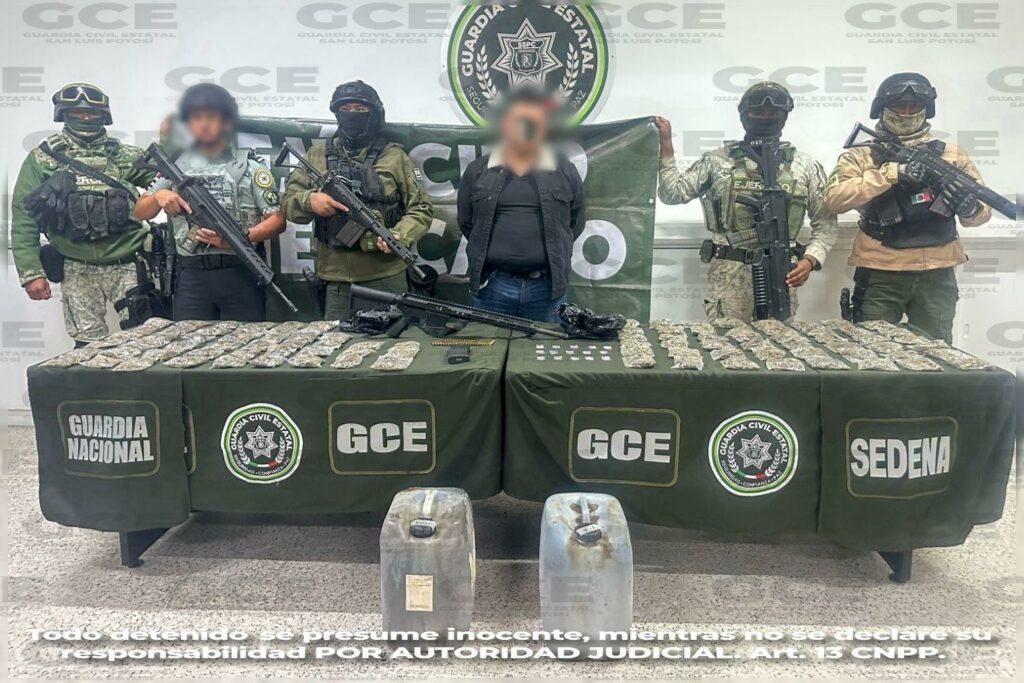 En el complejo habitacional de Torres de México, se detuvo a una persona por la presunta distribución de droga, además de que en el municipio de Villa de Reyes, se aseguraron armas largas, cargadores y equipo táctico, además de vehículos y “poncha llantas”.