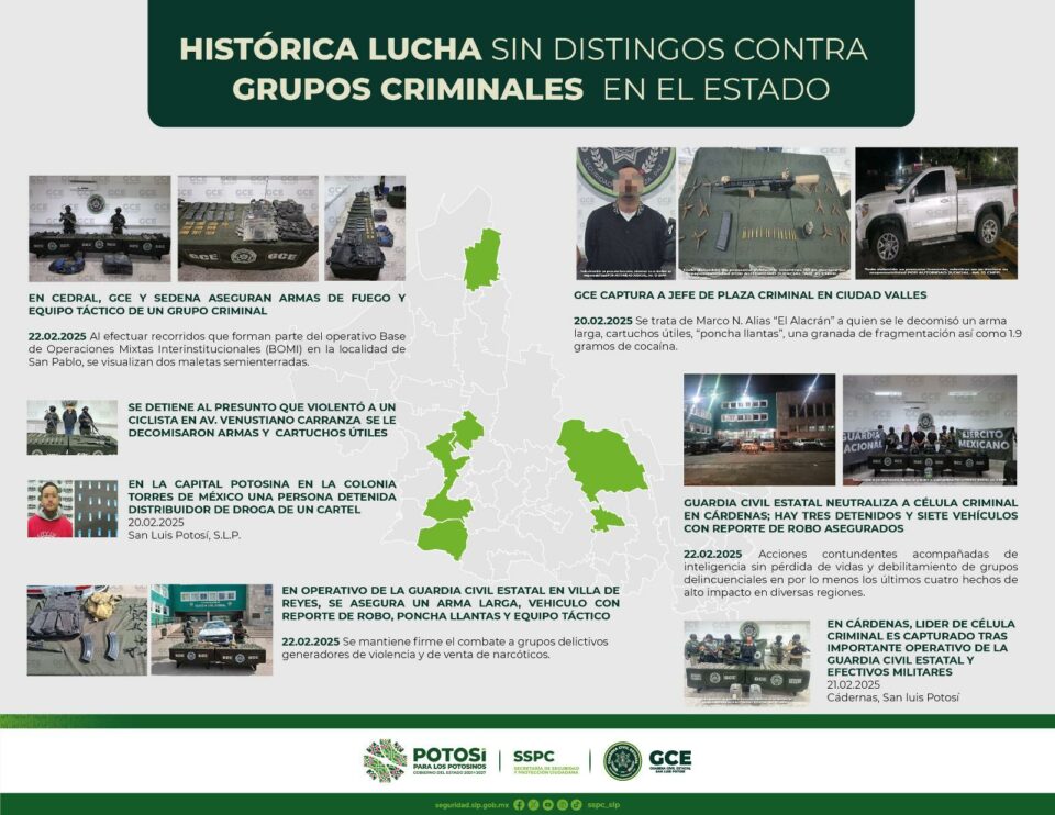 La Secretaría de Seguridad y Protección Ciudadana del Estado, ha neutralizado la operación de bandas criminales en las cuatro regiones del territorio potosino.