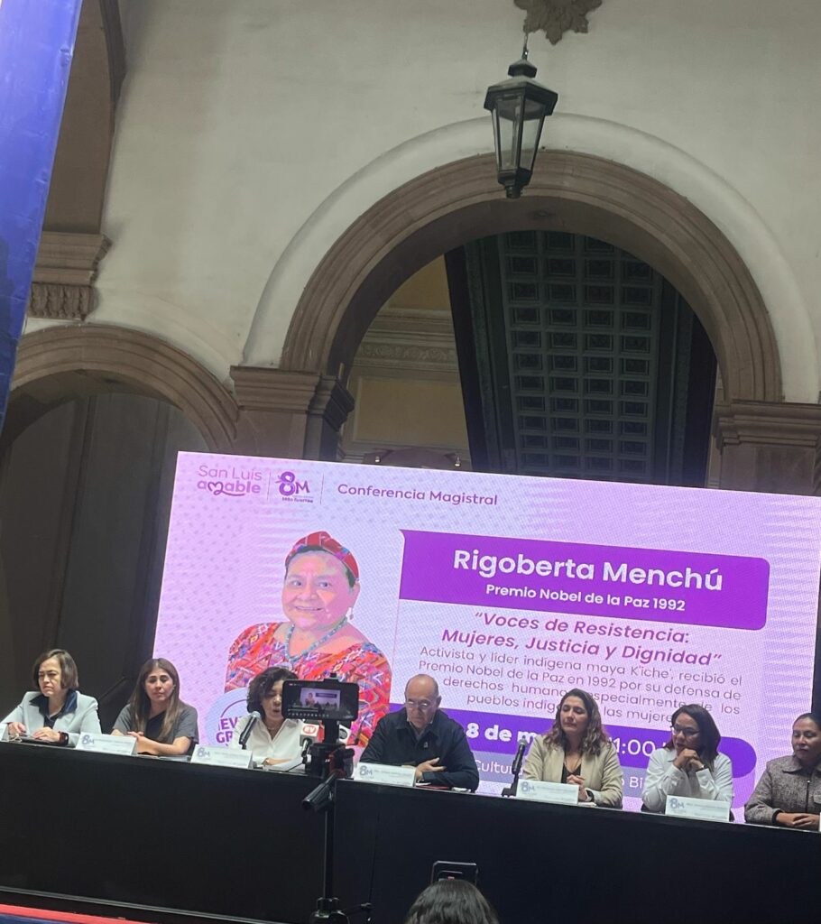 La escritora mexicana Ángeles Mastretta; Rigoberta Menchú, Premio Nobel de la Paz 1992; la periodista deportiva Inés Sainz y Adriana Macías impartirán una serie de cuatro conferencias magistrales en la ciudad como parte de las actividades por el #8M, Día Internacional de la Mujer, organizadas por el ayuntamiento de San Luis Potosí.