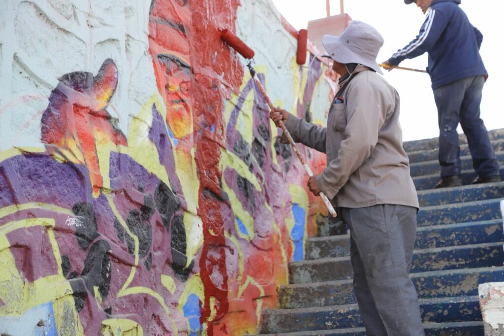 El Presidente Municipal anunció que se buscará a las y los jóvenes del sector para que pinten murales que mejoren la imagen del sector. Este espacio quedará al resguardo de la Dirección de Deporte, que realizará eventos deportivos de integración a la comunidad.