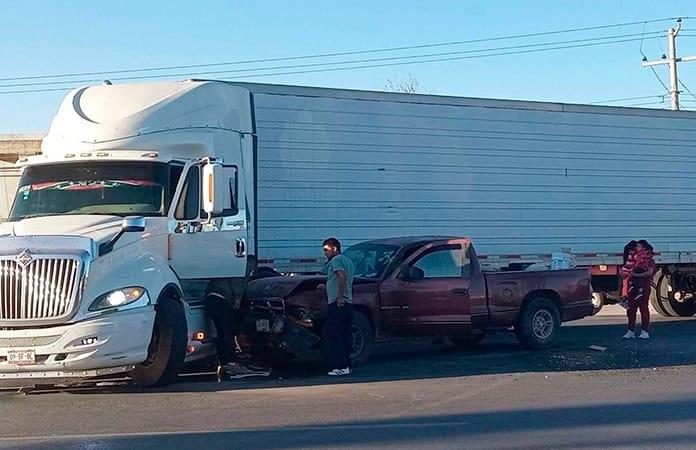 El otro accidente se suscitó a las ocho de la mañana en el kilómetro 13, en este caso un tráiler marca Internacional de color blanco, intentó dar vuelta en un retorno cortándole la circulación a una camioneta Dodge Silverado de color rojo que circulaba sobre la carretera zacatecas con dirección al norte.