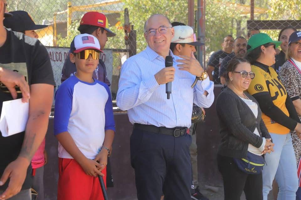 “Yo quiero dejarles un campo de beisbol al 100, porque este espacio es un símbolo para niñas y niños”, apuntó el Alcalde Enrique Galindo ante el presidente de la Liga Pequeña de Beisbol, Adrián Alonso López; niñas y niños que entrenan y participan en las instalaciones, así como entrenadores de esta liga que se desarrolla en el Estadio Infantil Don Roberto García Maldonado.