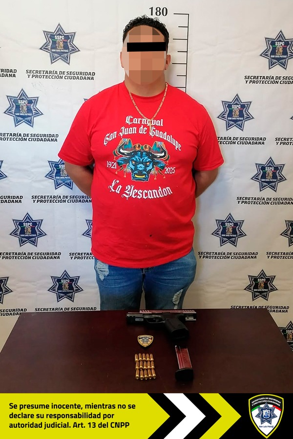 Al momento de hacerle un llamado para contribuir al orden, los oficiales detectaron que el implicado, identificado como José Alfredo “N” de 26 años, portaba dentro de mochila tipo mariconera un arma de fuego Smith & Wesson abastecida con 15 cartuchos, motivo por el que fue detenido y puesto a disposición de la Fiscalía General de la República.
