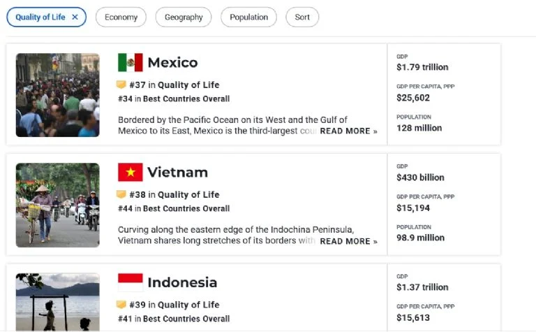 ¿En qué lugar está México en el ranking de países con mayor calidad de vida?