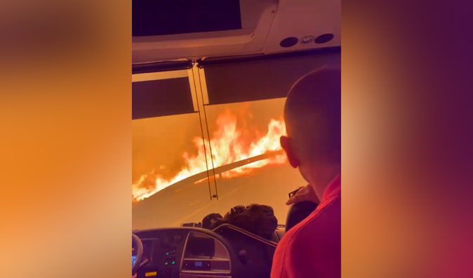 En redes sociales difundieron el video en el que se ve a un grupo de pasajeros descendiendo de un autobús para ponerse a salvo de un incendio que se acercaba a la unidad. Esto ocurrió en el municipio de Santa Catarina, en el estado de Nuevo León, durante la jornada de más de 200 incendios en el Área Metropolitana de Monterrey.