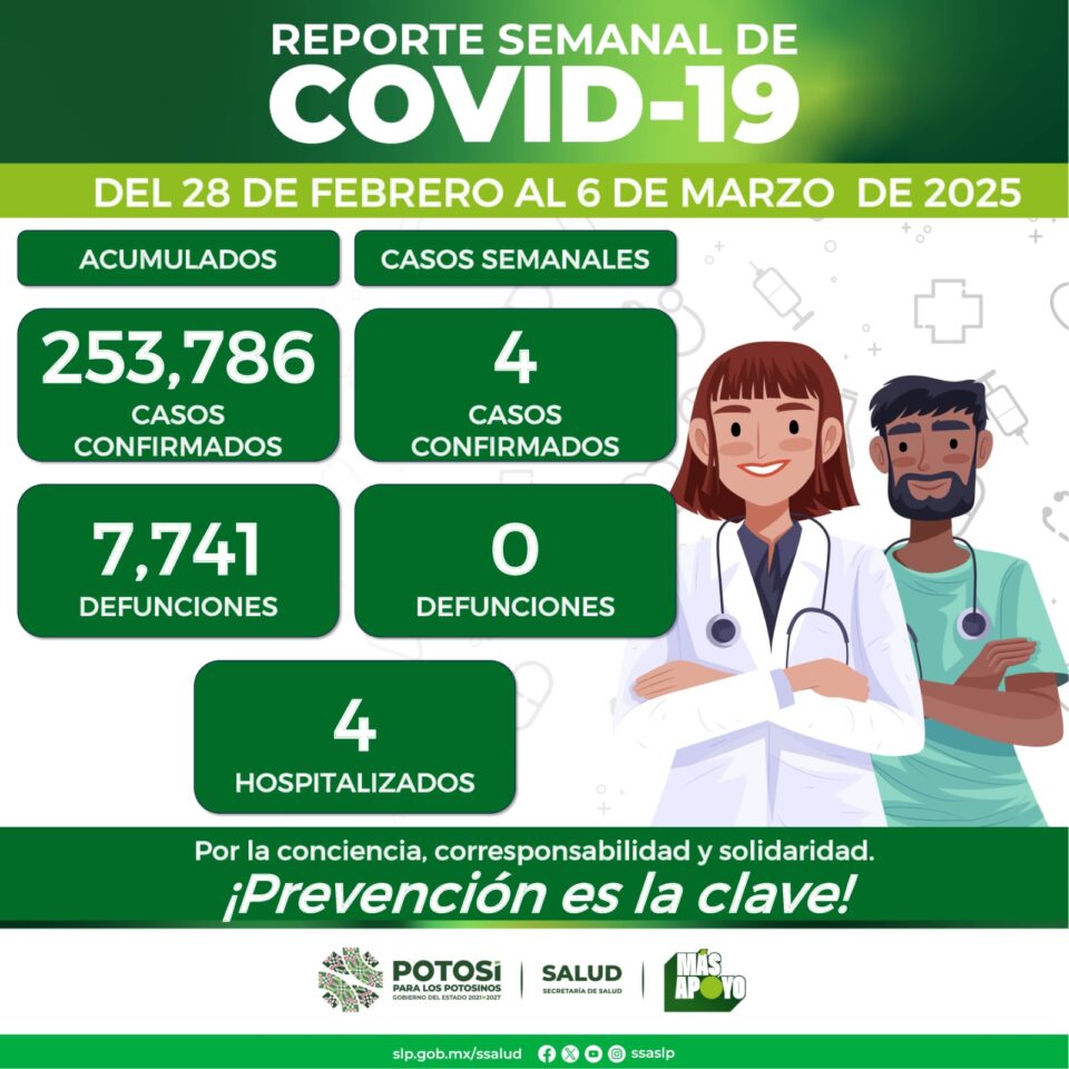 Del 28 de febrero al 6 de marzo, se registraron cuatro nuevos contagios de COVID-19 confirmando el Comité Estatal para la Seguridad en Salud y los Servicios de Salud 253 mil 786 casos totales de esta enfermedad de marzo del 2020 a la fecha.