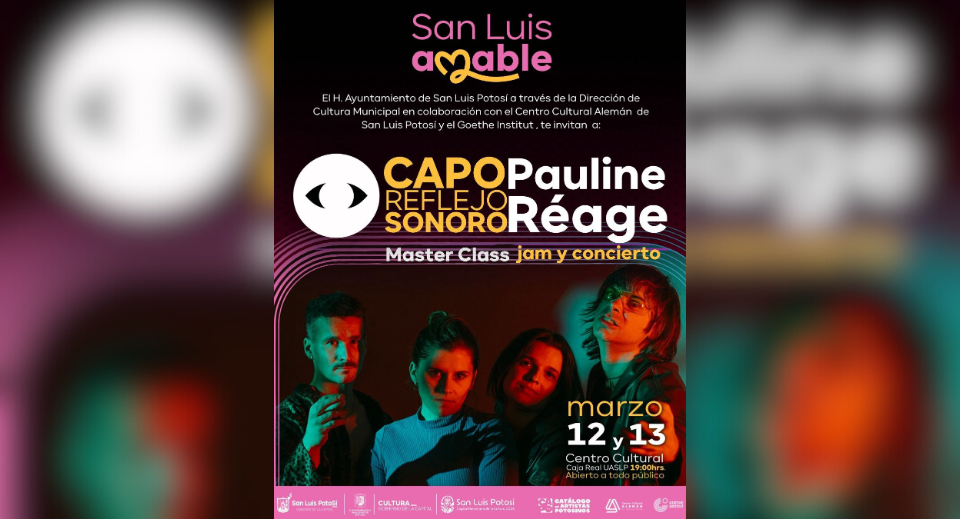 El Gobierno de la Capital a través de la Dirección de Cultura Municipal y en colaboración con el Centro Cultural Alemán de San Luis Potosí y el Goethe Institut presentan a la artista alemana Pauline Réage en San Luis Potosí, en un acuerdo de experimentación musical y de diálogo entre artistas locales e internacionales.