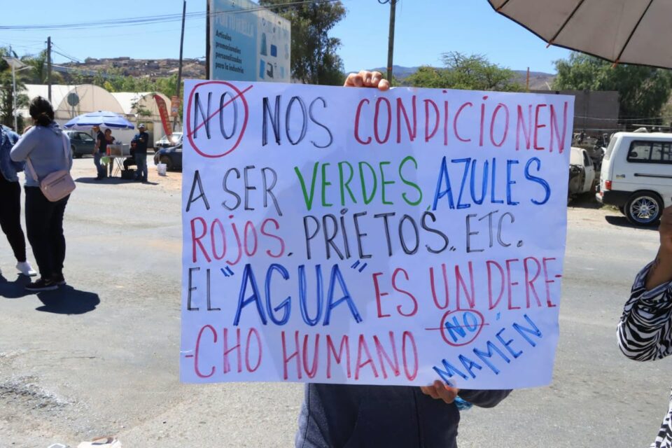 “No nos condicionen a ser verdes, azules, rojos, prietos, etc. El agua es un derecho humano”, se lee en una de las pancartas de los manifestantes.