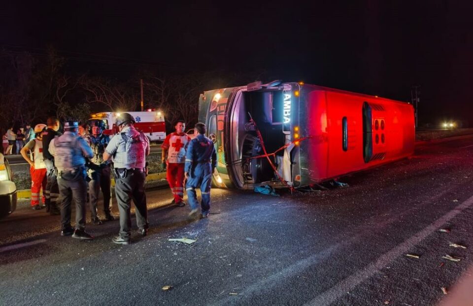 El autobús quedó volcado sobre su costado izquierdo, dejando heridos tanto al chofer como a todos los pasajeros.