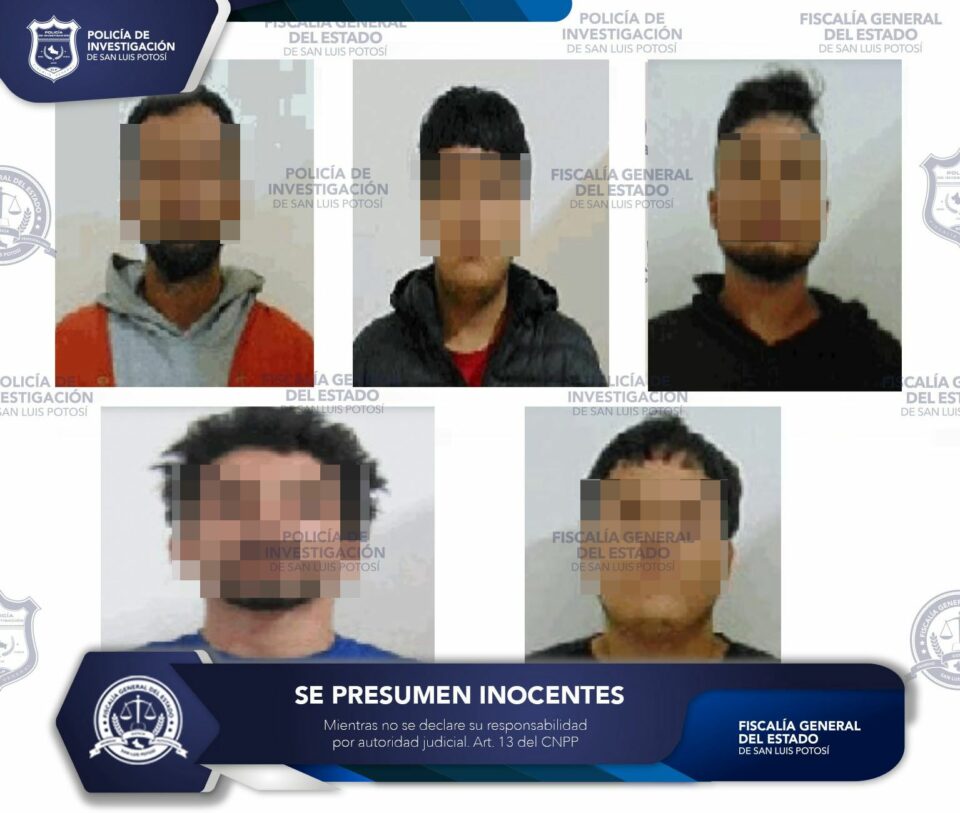 Se trata de Omar “N”, Jonathan “N”, Héctor “N”, Kevin “N”, y Oliver “N”, quienes fueron identificados por la FGESLP, de presuntamente despojar a víctimas de sus automotores y con esos mismos cometer otros robos.