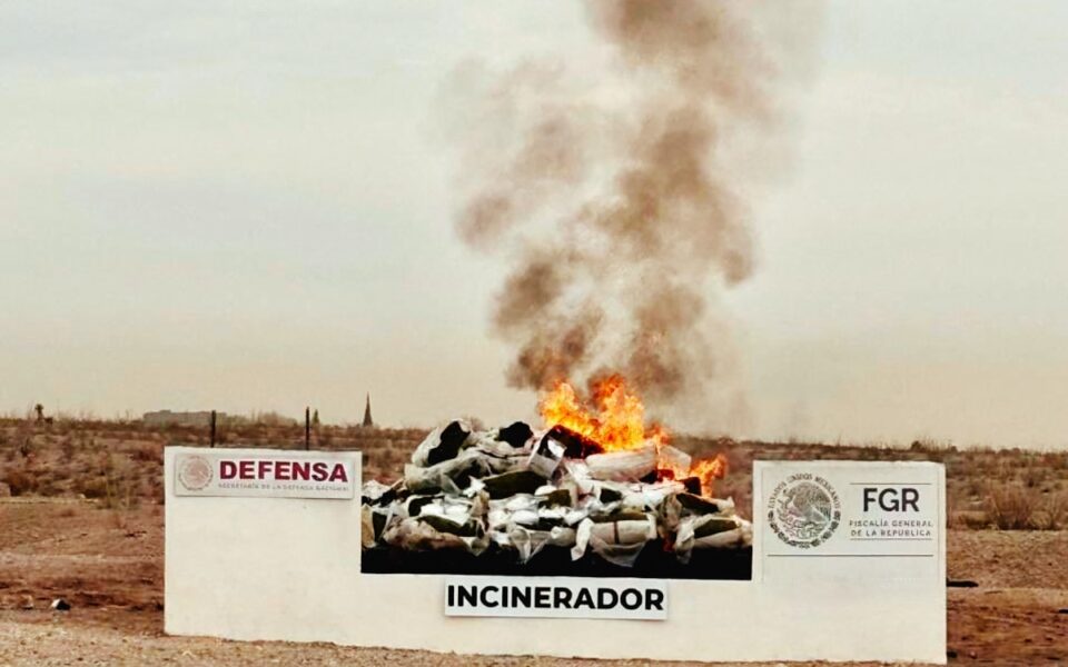 La Fiscalía General de la República (FGR), en colaboración con la Secretaría de la Defensa Nacional (Sedena), llevó a cabo la incineración de 1.8 toneladas de narcóticos, junto con 353 unidades de psicotrópicos y objetos del delito, en la frontera entre México y Estados Unidos.
