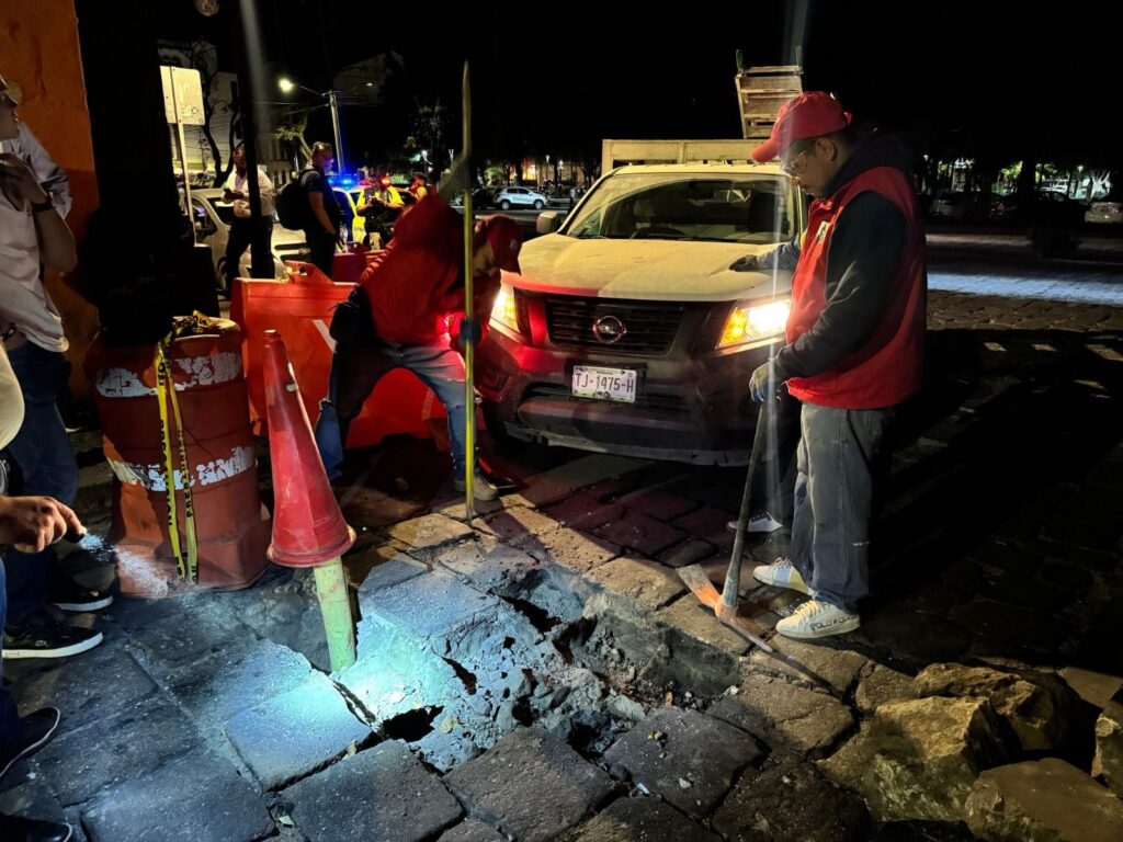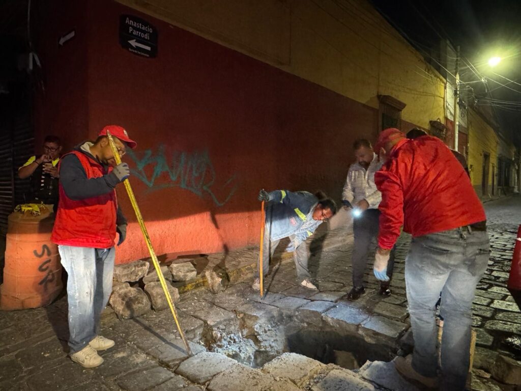 El Gobierno Municipal de San Luis Potosí, a través de la Dirección de Obras Públicas y la Unidad de Gestión del Centro Histórico, inició los trabajos de rehabilitación por un hundimiento de adoquines en la calle Parrodi, en el barrio de San Sebastián, que desemboca en la Alameda Juan Sarabia. Hasta el momento, no se tenían registros de reportes ciudadanos ni folios programados dentro del Programa de Bacheo Emergente, por lo que las cuadrillas de trabajadores acudieron de inmediato para evaluar la situación.