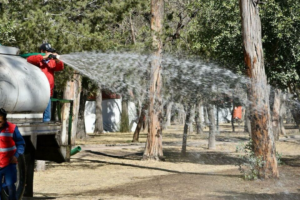 La Dirección de Servicios Municipales implementa el riego del Parque de Morales con agua no potable, asegurando el mantenimiento de las áreas verdes sin comprometer el suministro para la población.