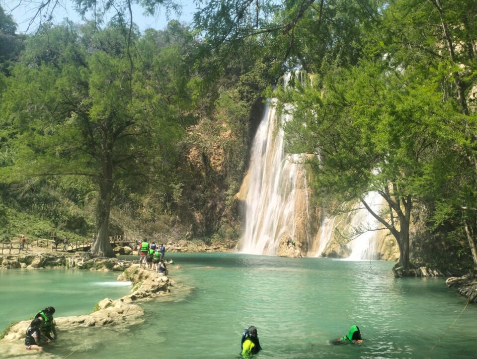 Esta cascada por su color turquesa de sus aguas y vegetación que le rodea es de incomparable belleza, es muy cercana al grupo de cascadas del municipio de Tamasopo.