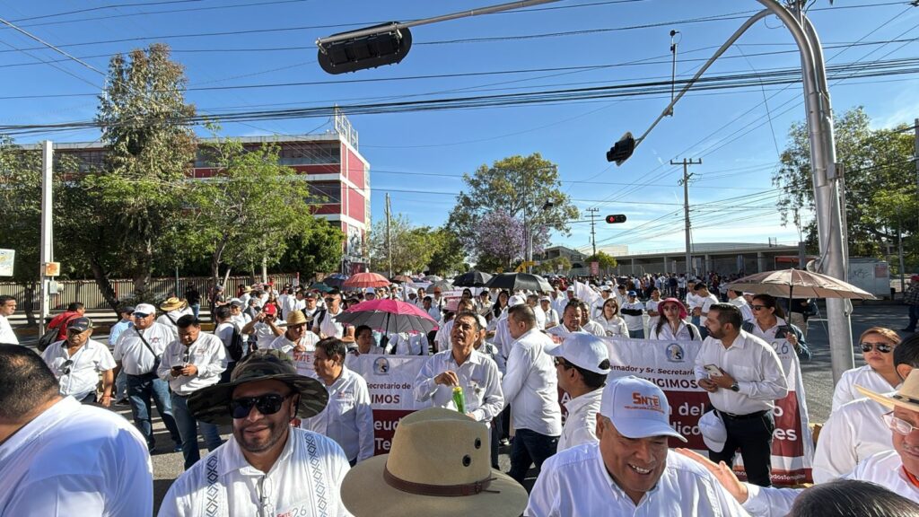 Más de mil maestros de Telesecundaria agremiados a la Sección 26 del Sindicato Nacional de Trabajadores de la Educación (SNTE), marcharon en la Capital de San Luis Potosí para exigir la homologación de plazas del sistema de Telesecundarias y otras demandas de un pliego petitorio que las autoridades no resuelven.