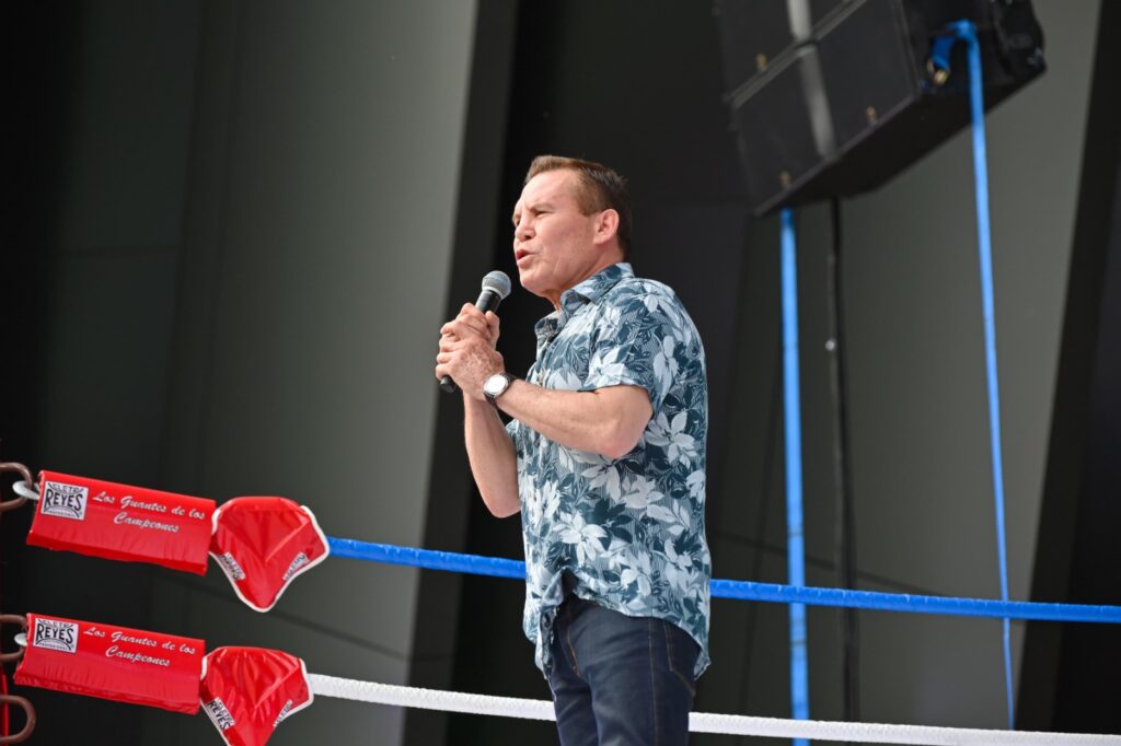 Durante la conferencia estuvo acompañado por el Gobernador Ricardo Gallardo Cardona, quien resaltó la importancia de contar con figuras como Chávez, que son una fuente de inspiración par las y los jóvenes potosinos; también reconoció que el deporte es una herramienta para recomponer el tejido social y combatir temas como las adicciones.
