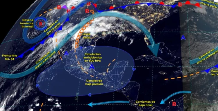 La entrada de humedad en el océano Pacífico y el Golfo de México ocasionará intervalos de chubascos en Chiapas y Oaxaca, así como lluvias aisladas en Guerrero.