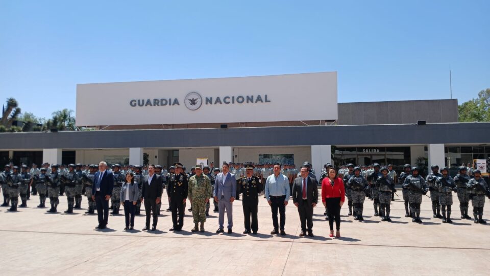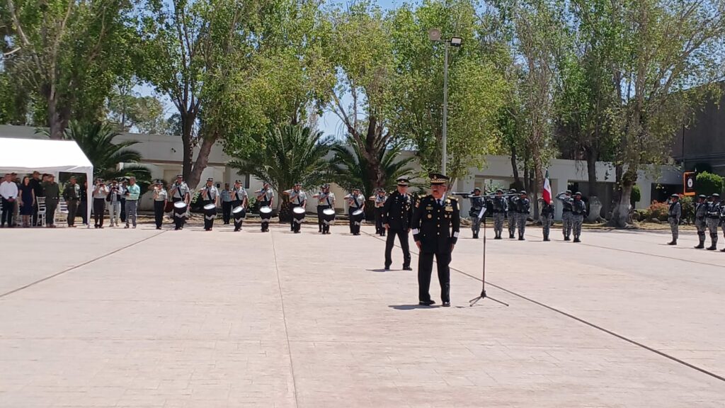 El coordinador territorial de la Región Centro-Norte de la GN, general Gerardo Serna Melchor fue el encargado de tomarle protesta al nuevo mando federal en San Luis Potosí ante cientos de elementos de tropa formados desde temprano bajo un inclemente sol.