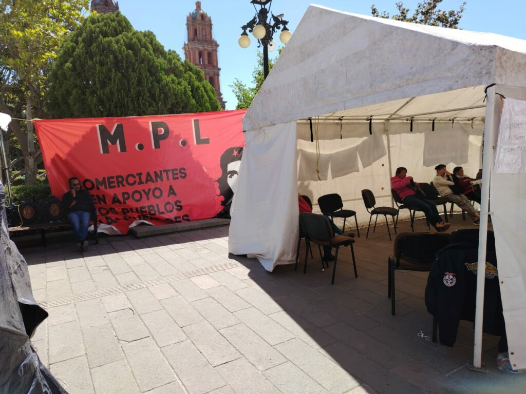 En días pasados el Secretario General, Guadalupe Torres Sánchez había anunciado qué, casi se lograba un acuerdo con MPL para su retiro ante el inició de la Semana Mayor y con ello la celebración de eventos importantes como es la Procesión del Silencio, pero continúan en plantón permanente.