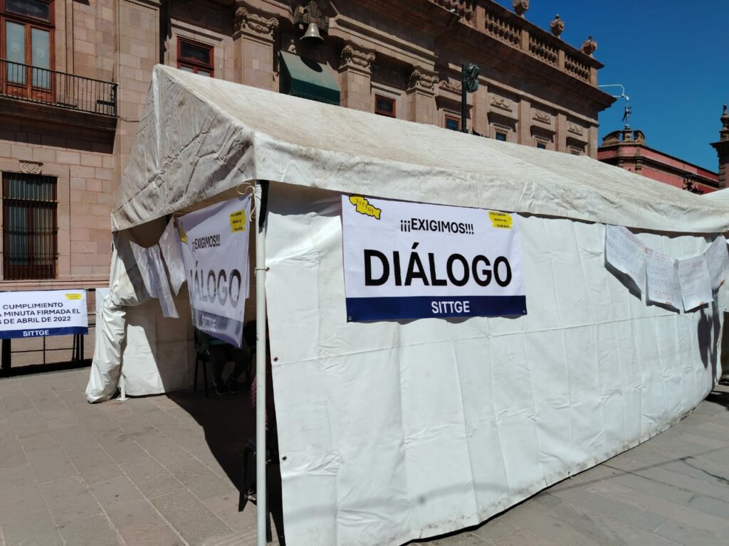 Este viernes, el Sindicato Independiente de Trabajadoras y Trabajadores del Gobierno del Estado (SITTGE) se sumó al de la organización Movimiento Pueblo Libre (MPL) en los campamentos de protesta instalados en la Plaza de Armas, a unos días del inicio de la Semana Santa.