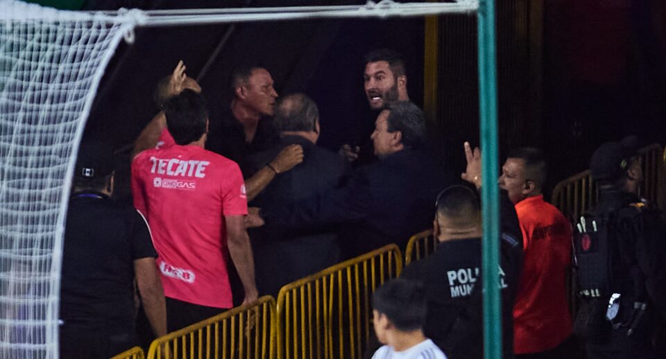 El silbante terminó por expulsar al entrenador de Tigres, Guido Pizarro, lo que derivó en una bronca que comenzó en la banca y se extendió hasta los pasillos del Estadio Universitario. Durante el altercado, el argentino lanzó una bofetada a un miembro del cuerpo técnico de Rayados.