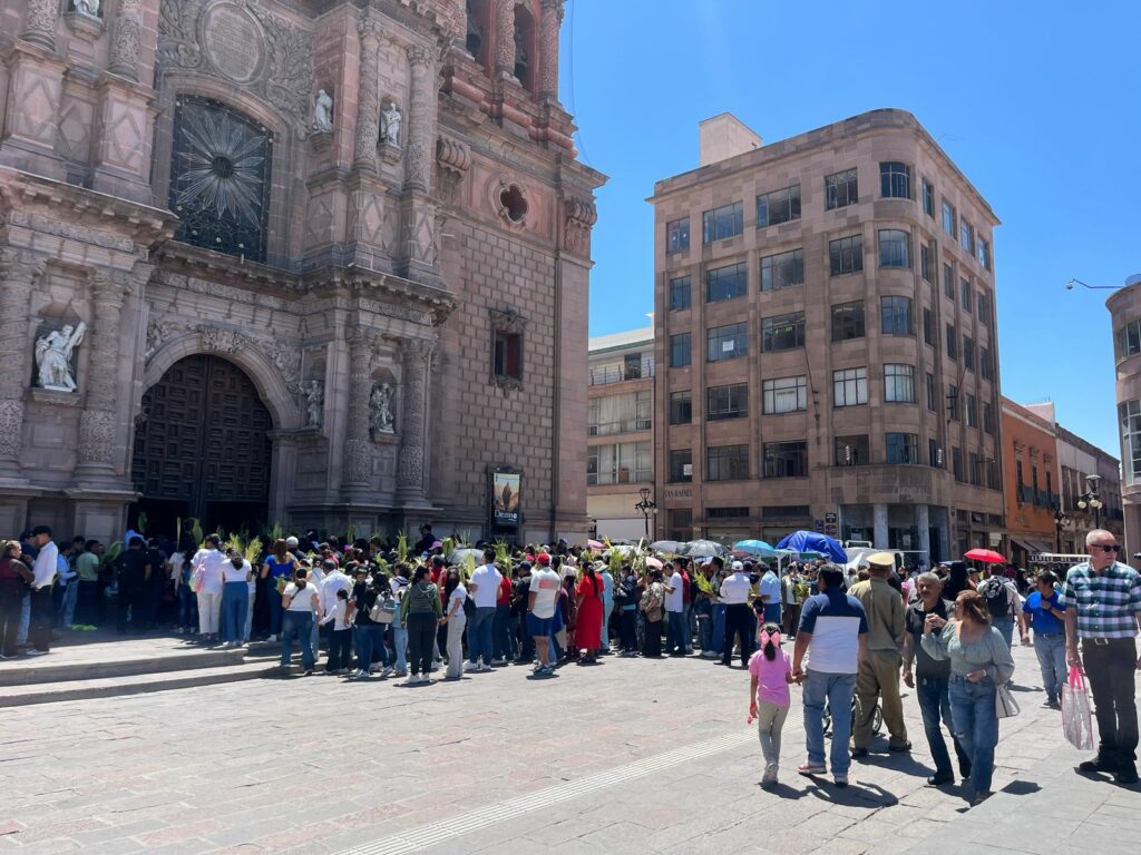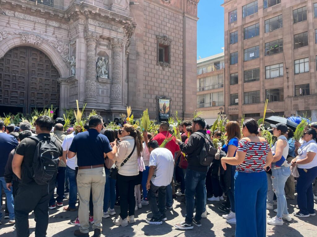 Fieles a la tradición católica, decenas de familias potosinas visitaron los templos de San Luis Potosí desde temprana hora para llevar a bendecir sus ramos, sin importar las altas temperaturas que se registran este domingo.