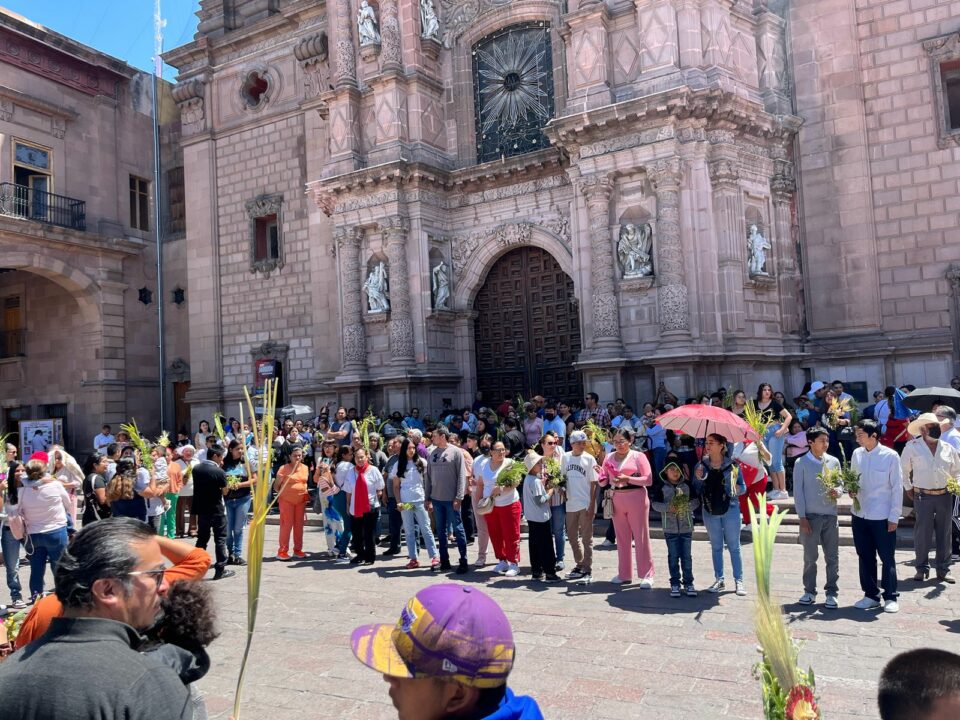 Fieles a la tradición católica, decenas de familias potosinas visitaron los templos de San Luis Potosí desde temprana hora para llevar a bendecir sus ramos, sin importar las altas temperaturas que se registran este domingo.