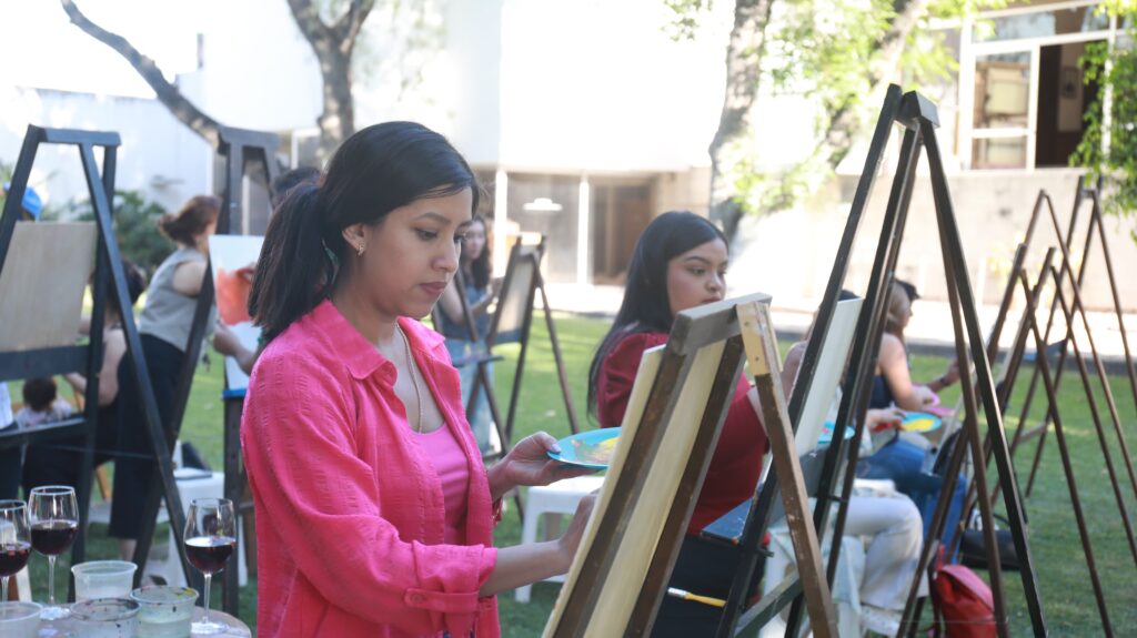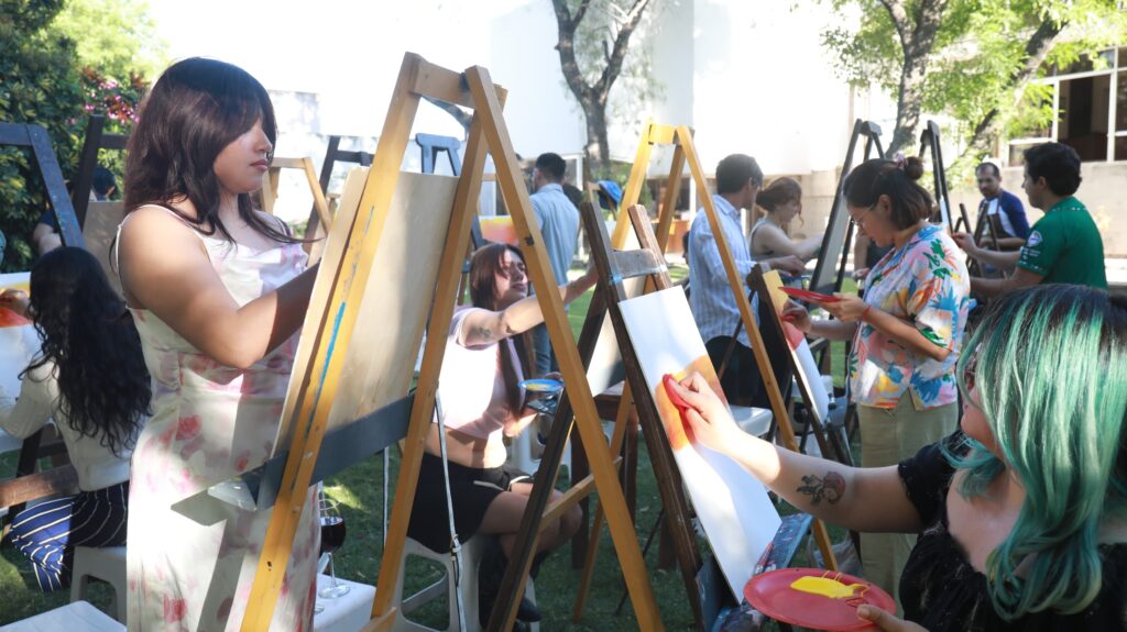 Durante el fin de semana, jóvenes potosinos asistieron a esta innovadora clase de pintura, la cual incluyó material y bebida de cortesía. Art & Wine es una actividad que combina el arte con la degustación de vino, una tendencia popular que brinda una experiencia enriquecedora y sensorial para las y los asistentes.