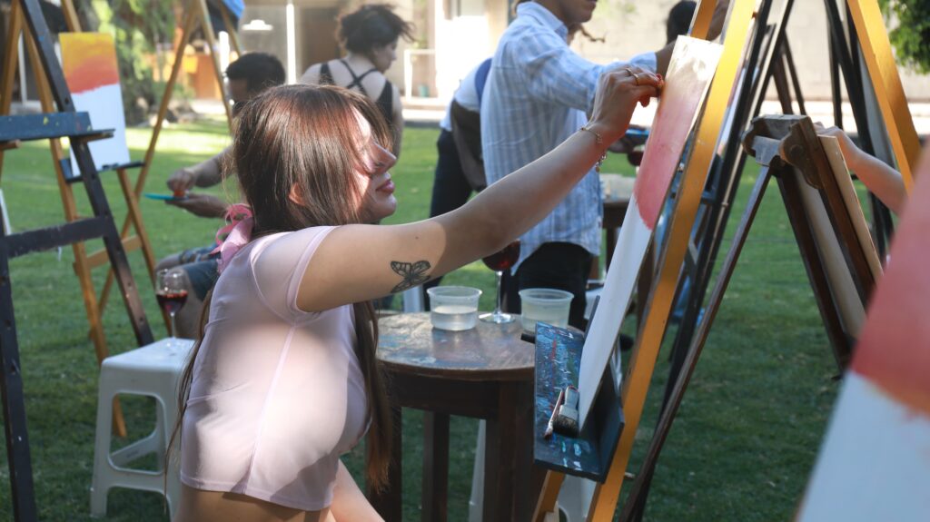 El evento se desarrolló en un ambiente relajado y divertido. No fue necesaria experiencia previa, ya que los participantes, guiados por el maestro Olvera, dieron rienda suelta a su creatividad pintando un atardecer en el mar.