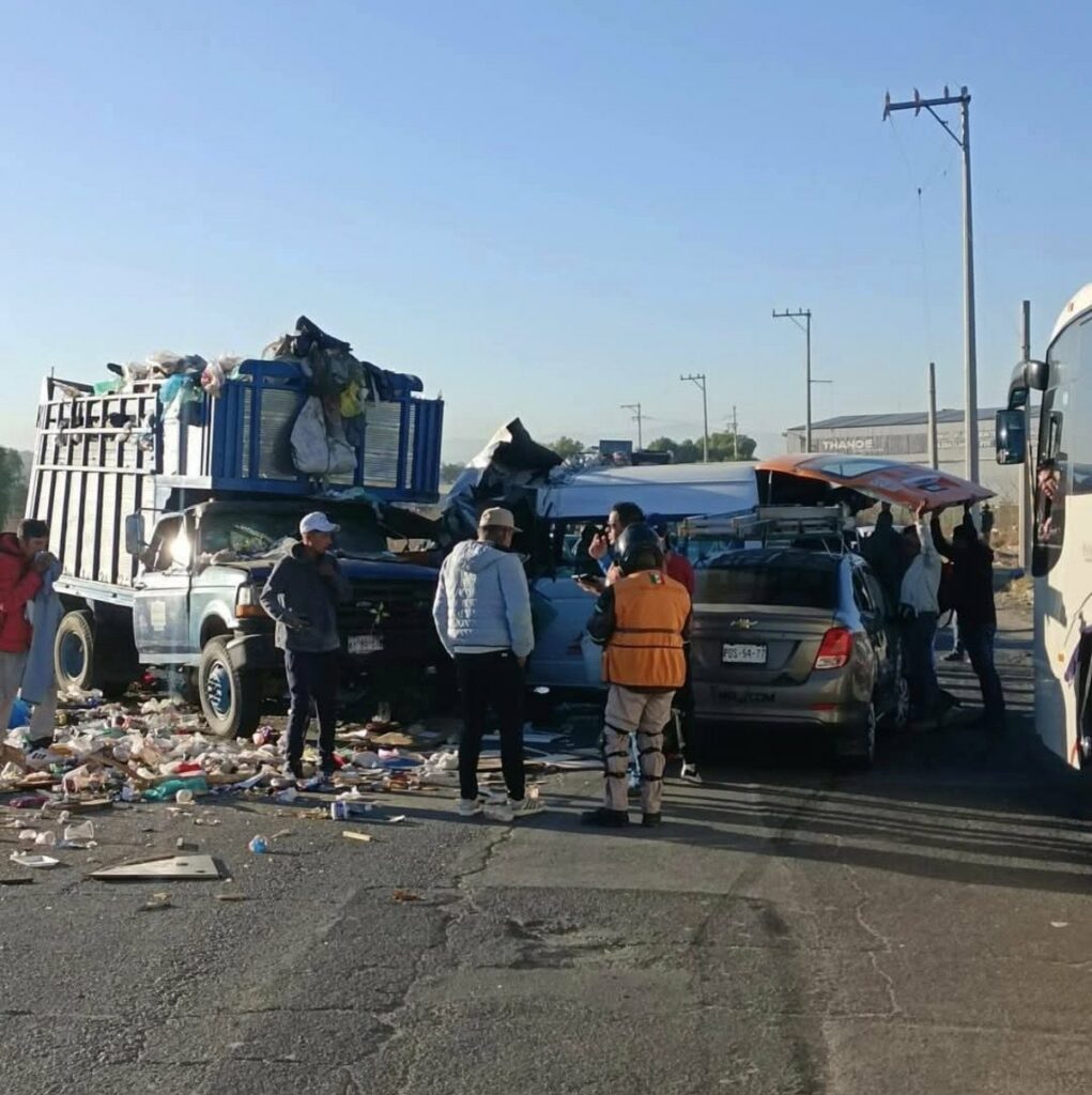 Esta mañana de lunes 14 de abril, al menos 5 personas murieron y 15 resultaron heridas por un accidente entre una combi de transporte público y un camión de redilas registrado en Tecámac, Estado de México.