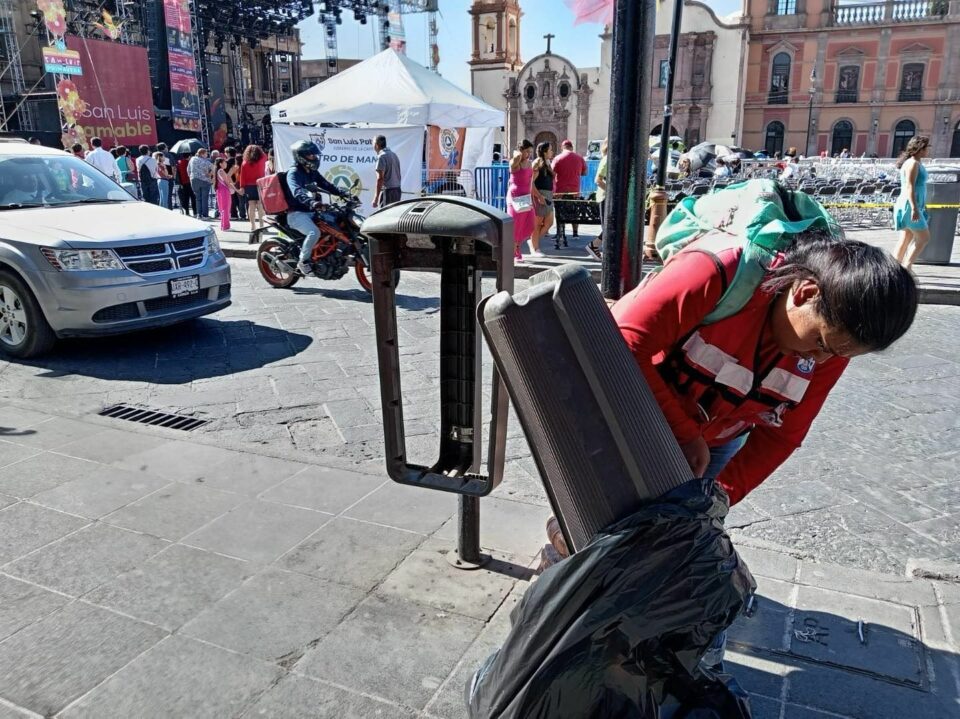 Con motivo del Festival Internacional San Luis en Primavera y de la estrategia integral implementada por el Gobierno de la Capital, la Dirección de Gestión Ecológica y Manejo de Residuos instaló nuevas papeleras en el Centro Histórico, además intensifica el trabajo de cuadrillas municipales para mantener limpias las sedes donde se llevan a cabo los diversos eventos culturales y artísticos.