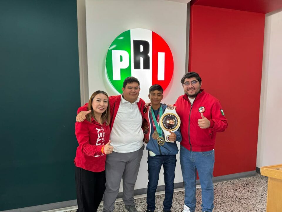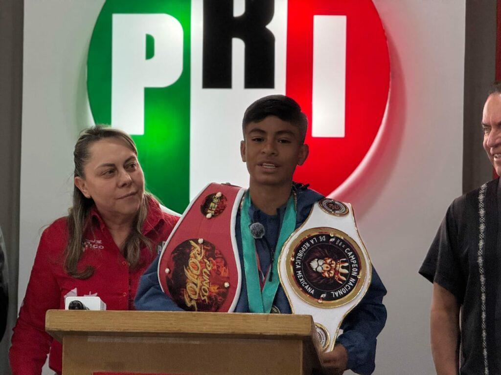 El pugilista acudió a las oficinas del Partido Revolucionario Institucional donde se reunió con la Presidenta del Comité Directivo Estatal Sara Rocha Medina, donde habló de sus logros y de los títulos que ha obtenido a nivel regional como nacional.